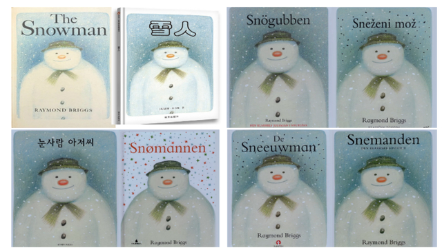 各语言版本的《雪人》封面。