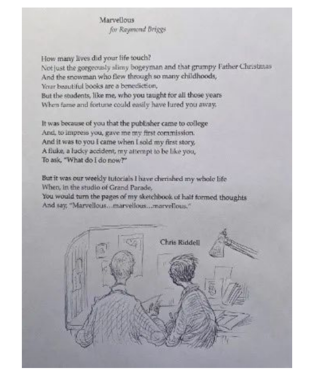 16.Riddell, Chris. Marvellous for Raymond Briggs. A poem posted on Twitter.