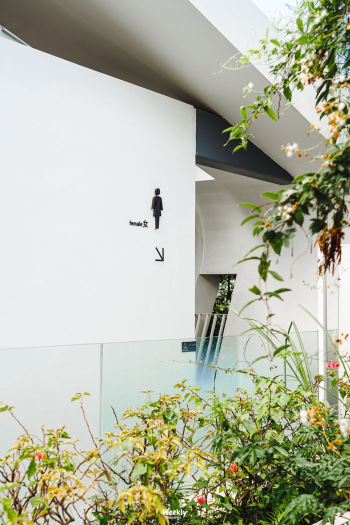 穿过藏在树林间的白色拱门,映入眼帘的是白色极简风的塘朗公厕,简约的建筑线条,明确区分开了男女厕的位置,即使再急迫,也不会有进错厕所的尴尬。