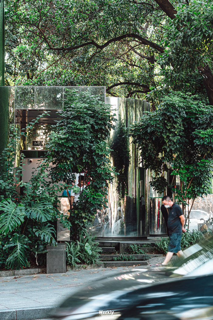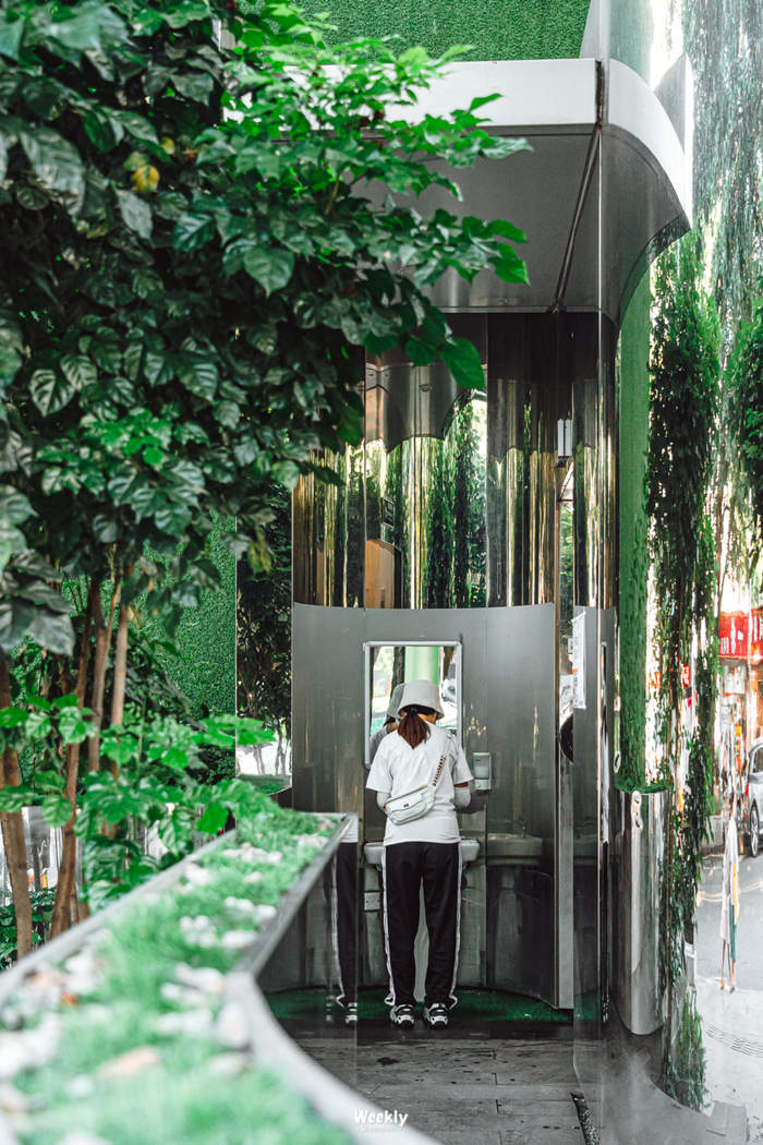 但它却跟其他厕所大不相同,由大片绿植和镜面打造成时空胶囊,每个胶囊里是独立的如厕空间,甚至还设置了儿童专属小便池和洗手池。