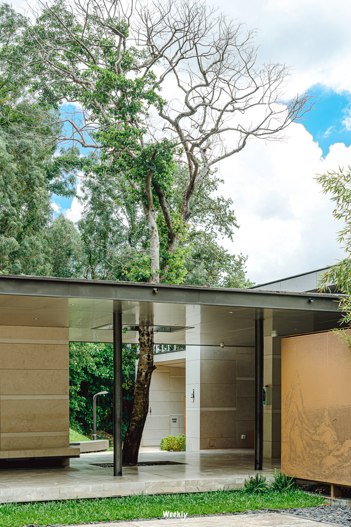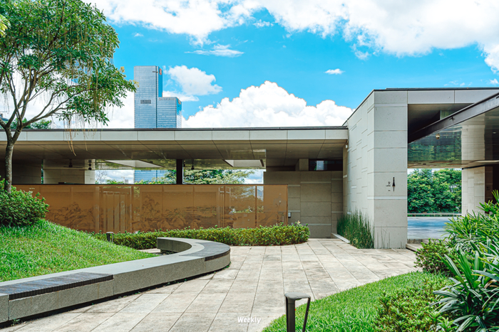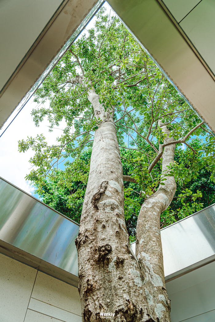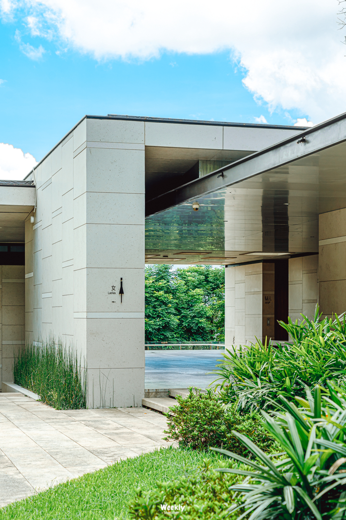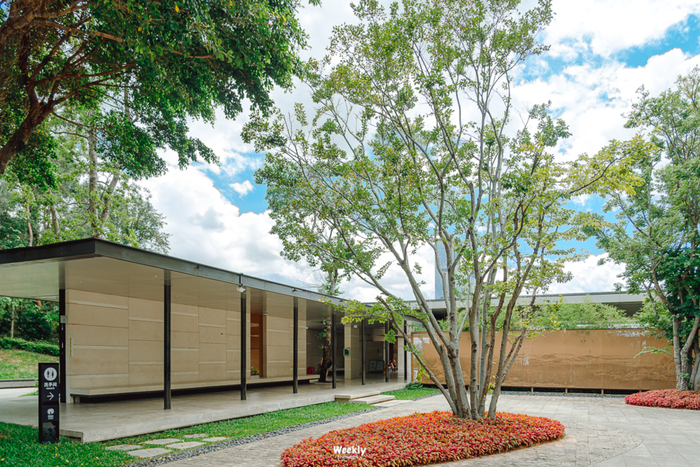 从邓小平雕像处下山,你会看到一片极简风建筑,沿山而建,乍一看就像一座艺术馆,四处虽然都有镂空,但却打造出林中有屋,屋中有林的神秘感。