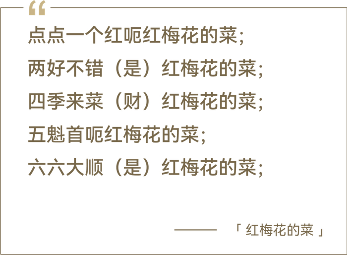 老武汉喝酒划拳的行酒令《红梅花的菜》,我把它写进了新专辑,歌词是武汉话顺口溜,曲子伴奏是12小节的Blues(布鲁斯)。