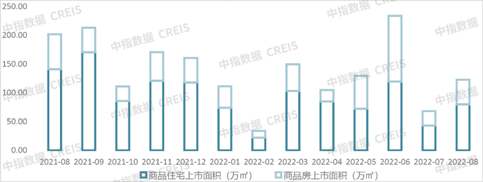 图:2021年8月-2022年8月青岛市商品房和商品住宅供应情况