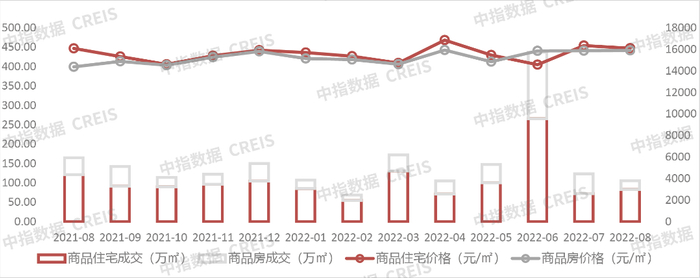 图:2021年8月-2022年8月青岛市商品房/商品住宅成交情况