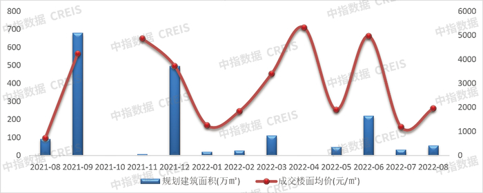 图:2021年8月-2022年8月青岛市经营用地成交情况