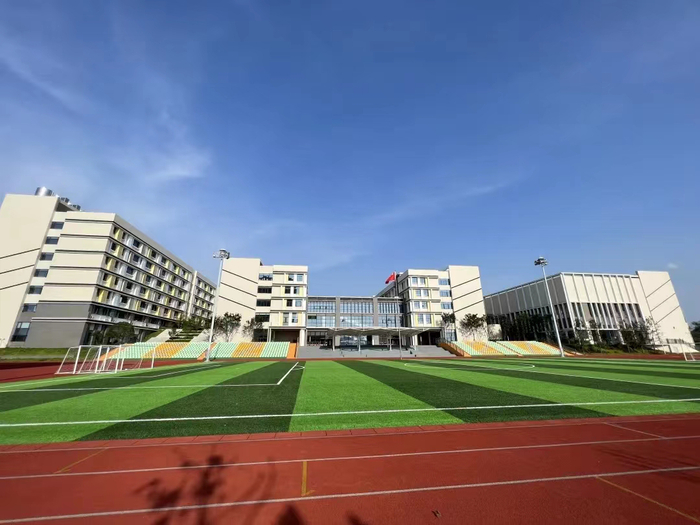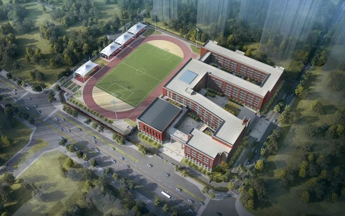学校配有现代化的教学设备、宽阔大气的操场、书盈四壁的图书馆、功能齐全的艺体馆、温馨方便的宿舍、干净卫生的食堂;6个室外篮球场、1个室内篮球馆、2个网球场等,将成为学生运动、游戏、体艺特色发展的新阵地。