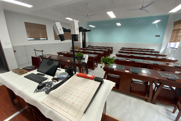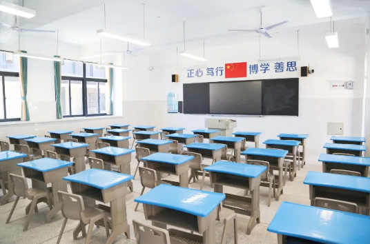 学校配有24间标准教室,每间可容纳50名学生。所有教室统一装配了智慧教学系统,高清触摸式一体机,既是黑板,又是屏幕。
