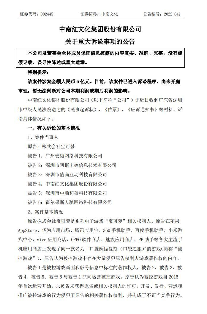 涉案金额5个亿,上市公司被“宝可梦”起诉,啥情况?