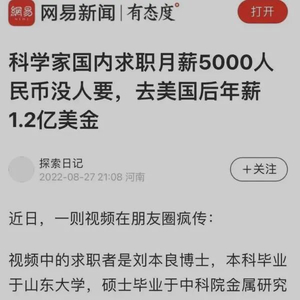 博士求职月薪5000遭拒,出国年薪1.2亿美元?本人回应了