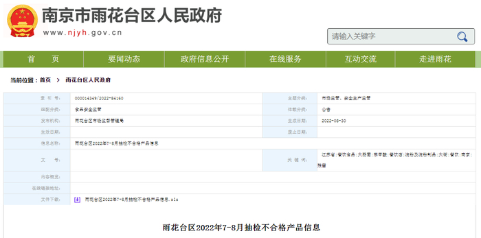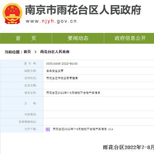 南京市雨花台区2022年7-8月抽检不合格产品信息