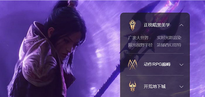 在游戏某一宣传网页中,“暗黑美学”标签下的拓展内容,难得地对“暗黑美学”这一概念作了一些解释:广袤大世界、实时光影渲染、限光视野半径、浓郁西幻哥特。在游戏画面表现上这一方面,官方美术团队也特意分享了思路历程,这些内容也都在游戏中得到了体现。