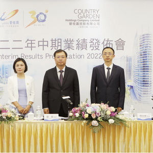 ▲图:碧桂园集团总裁莫斌(中)、常务副总裁程光煜(右)、首席财务官兼副总裁伍碧君出席2022年中期业绩发布会