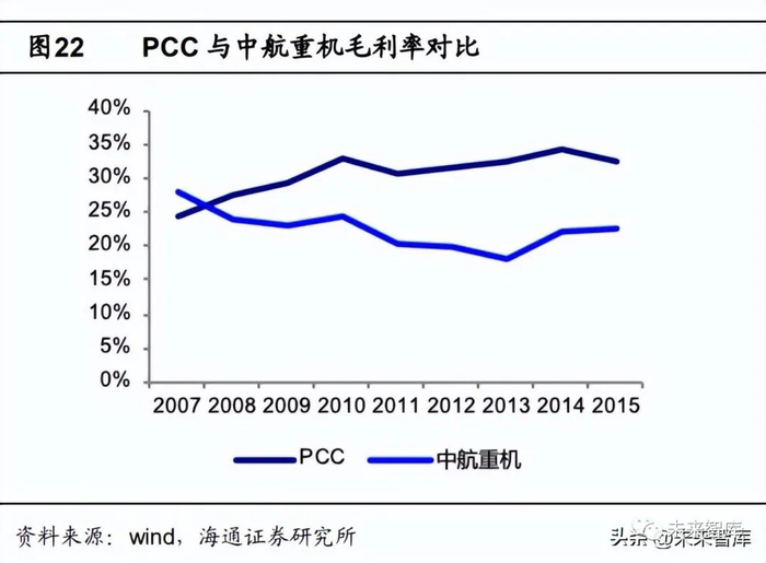 国外龙头锻造企业固定资产占资产比率相对较低,绝对值远大于国内龙头企业,全 产业链布局有效的平缓毛利率波动。以 PCC 为例,15 年公司的固定资产已达到 152 亿 元,占资产比率 12%并且呈现下降趋势,而中航重机 2021 年的固定资产达到 24 亿元, 占资产比率 12.18%。从毛利率来看 PCC 收购了 Special Metals 和 TIMET,向上游拓展 布局了材料,所以毛利率相对来说比较稳定,并且高于同期中航重机的毛利率,而中航 重机受上游价格波动影响相对来说会比较大。