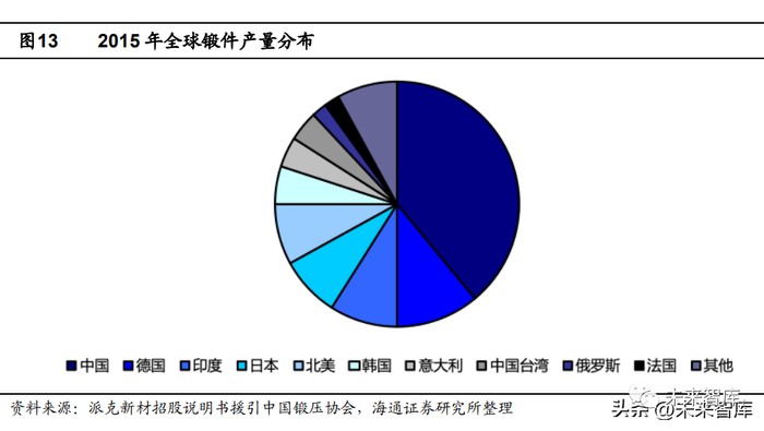 从全球锻造行业来看,我国产量占比大(15 年数据),但德国、美国、俄罗斯为代 表的发达国家在原材料、装备水平、锻造技术和工艺等方面均处于世界领先地位。我国 锻造行业在原材料、热处理工艺、锻造工艺优化等方面与发达国家仍存在一定差距,在 锻造行业的工艺数据库、材料数据库及软件开发仍与国外领先技术存在一定差距,基本 处于空白,制约了我国锻造行业的快速发展。