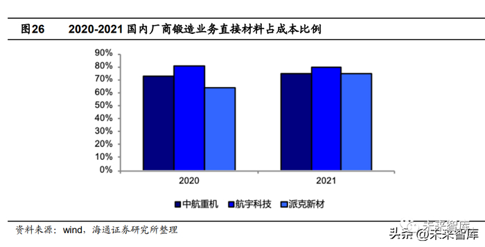 航空锻件行业使用的主要原材料占主营业务成本比例较高,原材料价格波动对行业 生产经营构成重大影响。目前国内锻造行业用原材料发展不均衡,普通锻造的材料如碳 钢、普通的合金钢和不锈钢产能充足、品类丰富、质量相对稳定,而特殊锻造用材如高 温合金、钛合金、航空航天用铝合金等高端材料则存在研发水平欠缺、质量不稳定等问 题,导致部分品类仍全部依赖进口。