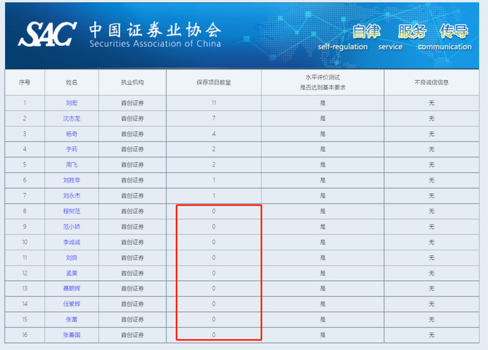 据中国证券业协会的保荐代表人名单显示,截止到2022年6月中旬,首创证券的保代人数则降为了20人。