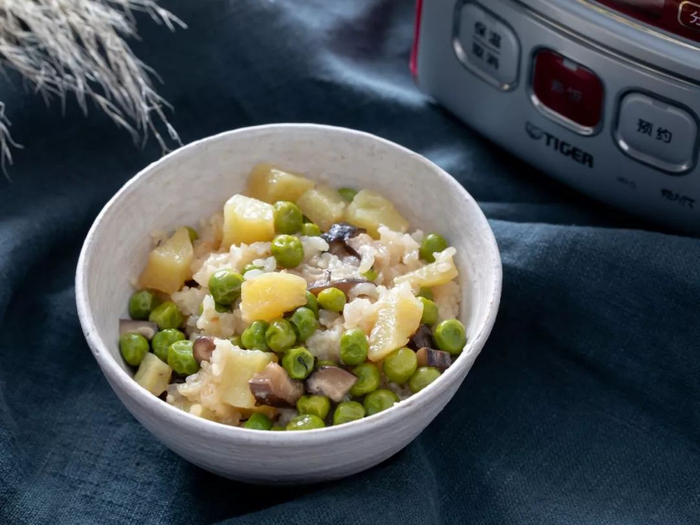 掀开锅,喷香四溢,颗粒还很分明、米粒膨胀饱满,让人忍不住想多吃一碗。