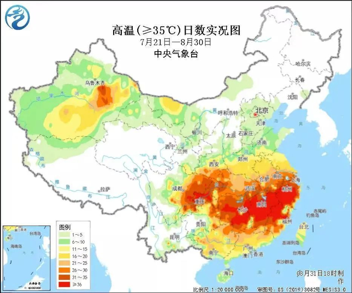 据统计,其间,35℃、37℃和40℃以上高温影响面积分别为452.9万平方公里、328.6万平方公里和141.8万平方公里,影响人口分别为10.5亿人、8.1亿人和3.0亿人。