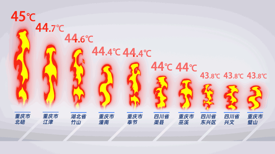 据统计,8月18日和19日,重庆北碚 出现45℃ 的高温天气,成为中东部地区今年最高气温。