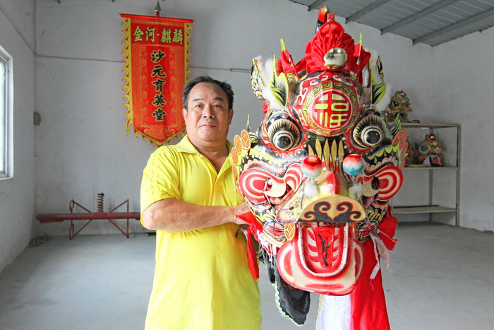 当时,蔡玉财的舞麒麟技艺精湛,得到大家的认可,已然成为樟木头舞麒麟的领军人物。在他和各麒麟舞传人的商议下,决定对麒麟舞表演动作进行精简保留,从过去单、双打武术表演改成现在加入群体打斗表演,还统一了舞麒麟的表演服饰,塑造麒麟舞队伍整体形象。