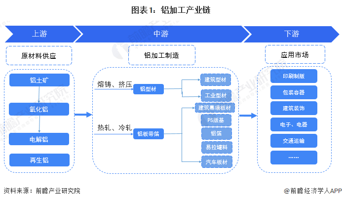 铝加工产业链全景梳理:中游主要产品为铝型材和铝板带箔