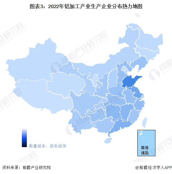 铝加工产业产业链区域热力地图:山东企业数量最多