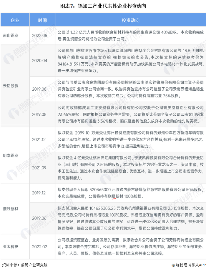铝加工产业代表性企业最新投资动向