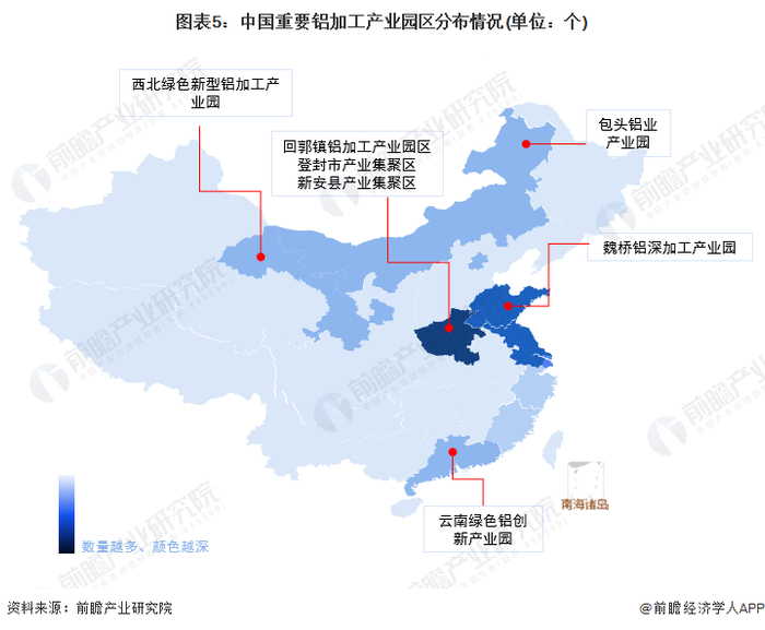 铝加工产业产业园区分布图:河南省最多