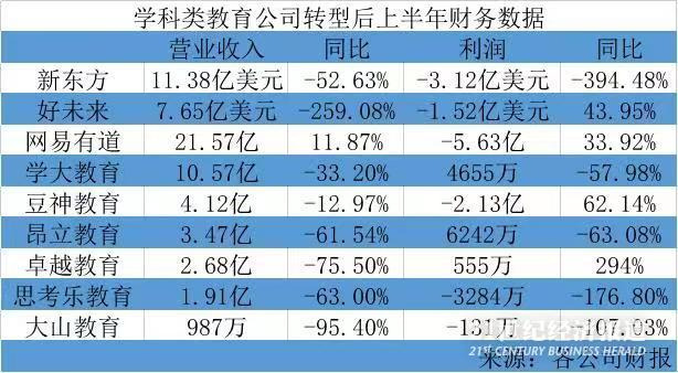 21世纪经济报道记者王峰报道  教育上市公司密集发布半年报,那些曾经的学科类培训巨头,如今转型成绩单如何?