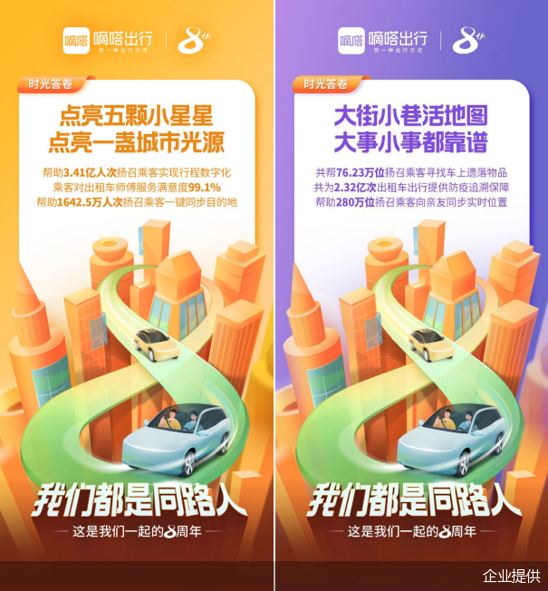迎来成立八周年 嘀嗒出行以8张“时光答卷” 抒写与广大同路人的相互成就