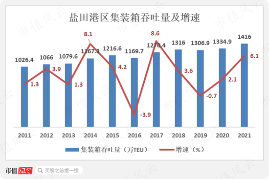 在2021年,包含盐田、南山和大铲湾三大港区在内的深圳港集装箱吞吐量位列全球第四名。