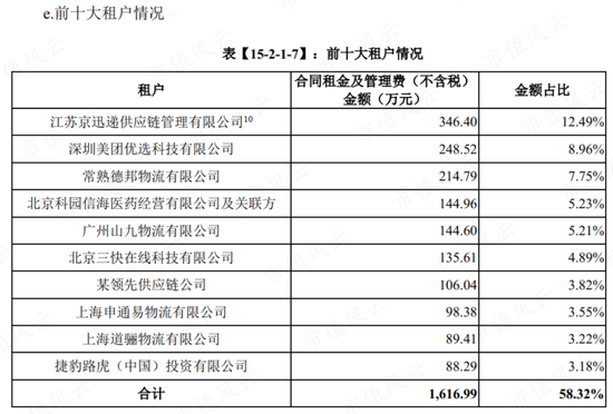 但是,风云君发现,截至2020年末,第一大租户实际上是美团优选及其有关联的北京三快在线科技有限公司,收入占比合计达13.85%。