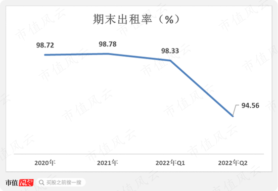 截至2021年末,中金普洛斯的出租率为98.78%,但是在今年6月末,期末出租率下降至94.56%。