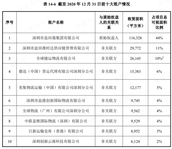 除了需求旺盛,客户群也非常稳定。由于盐田港集团不仅是港口的投资商,还提供综合物流服务,对海运仓储有强需求。因此,盐田港集团是红土盐港租赁面积占比最大的客户,达44%。