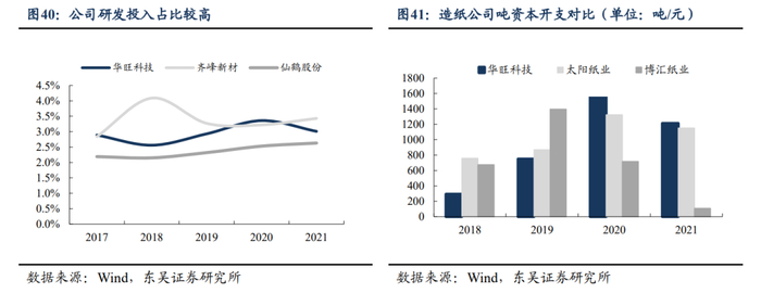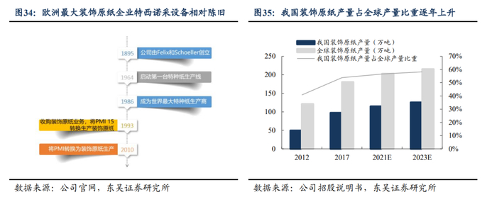 产品品质卓越,“先进生产设备+工艺技术积累”构建公司核心竞争力。装饰原纸属于资金密集型产业,公司生产设备全球领先。与大宗纸“交钥匙工程”不同,公司产线均由国外进口并为定制化生产,每套产线近5亿元投入,先进的生产设备是公司生产中高端装饰原纸产品的保障。