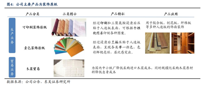 切入上游原材料,平抑原材料成本波动。公司装饰原纸业务中,原材料占生产成本约80%。布局木浆贸易业务,有助于公司进行规模化采购及低价囤浆,降低公司木浆采购成本。在保证产品质量的同时,通过技术研发持续降低产品中针叶浆使用量(针叶浆价格高于阔叶浆),缓冲部分浆价上涨对成本的影响。