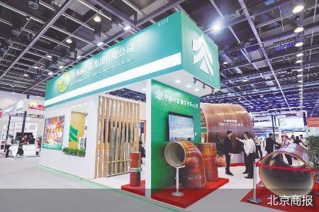 在2022年服贸会上,一家企业展区上放置的巨大管廊吸引了众多观众驻足。这是来自中国林业集团的竹缠绕管廊,它的直径达到3.6米,一眼望去,在亮点纷呈的环境服务展区中依然足够显眼。