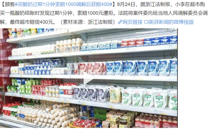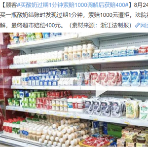 大象·今评弹丨买酸奶过期1分钟获赔400元,是谁在较真?