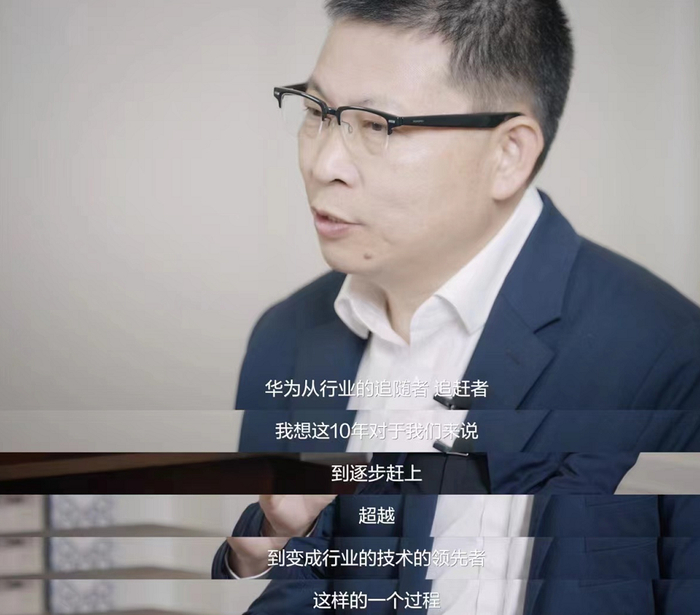 在这份快答视频中,余承东表示,最近10年,对华为来说,是这样的一个过程,华为从行业的追随者、追赶者,到逐步赶上、超越,到变成行业的技术领先者。