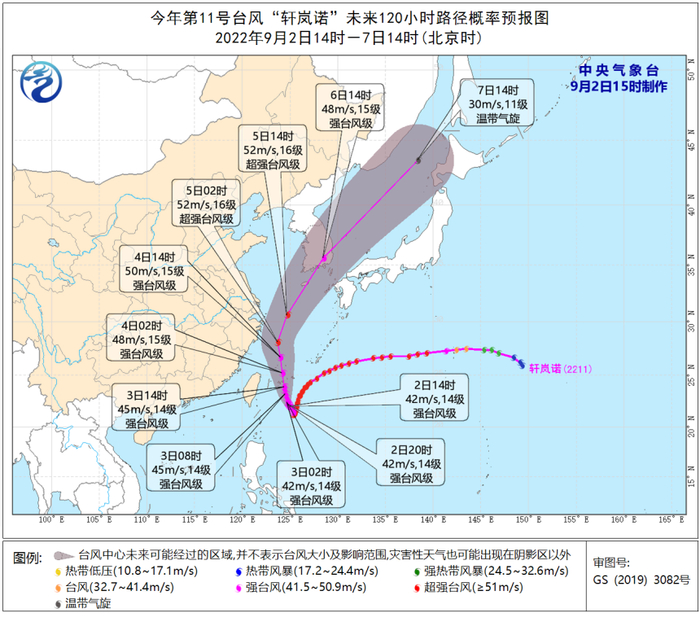 9月2日,中央气象台台风与海洋气象预报中心首席预报员周冠博在接受媒体采访时分析称,台风“轩岚诺”尺度大、持续时间长、强度强,将对我国产生较强风雨影响。