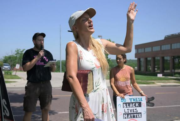 堪萨斯州利伍德的反堕胎抗议者(上),与此同时,另一些支持堕胎的民众在芝加哥举行游行(下)(《纽约时报》图)