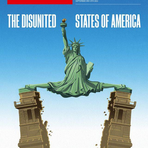 在英国《经济学人》9月1日公布的发表最新一期杂志封面中,美国自由女神像玩起了“一字马”:尽管脚下底座已开始分崩坍塌,她仍尴尬地劈着叉,故作镇定捧着《独立宣言》并高举火炬,而那火焰恰好“烧断”了头顶醒目的标语——美利坚分众国(The Disunited States of America)。“分裂”“对抗”“两极分化”,它们既是杂志封面故事反复提及的形容词,也正是这副讽刺画作想要揭露的美国社会现实。