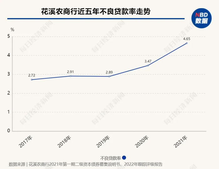 东方金诚评级报告显示,受疫情影响,企业经营压力较大,花溪农商行逾期贷款和不良贷款率持续升高。截至2021年末,该行逾期贷款规模为45.73亿元,同比增长117.85%;逾期贷款占比27.32%,同比上升14.74个百分点;不良贷款率为4.65%,同比抬升了1.17个百分点。