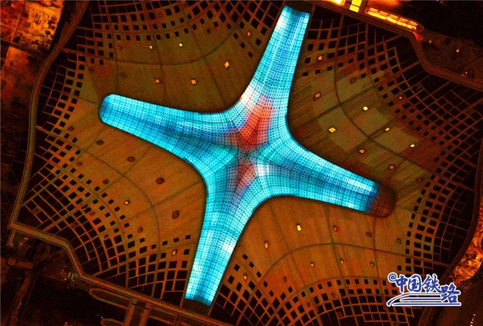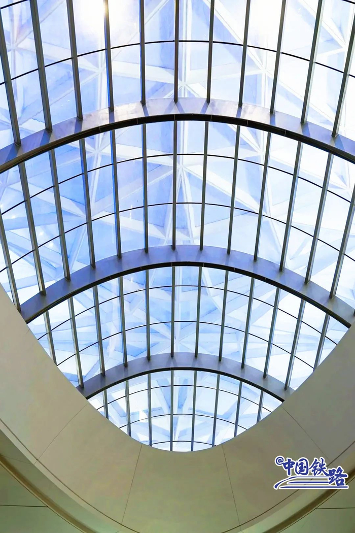 进入候车室仰头望去,以“云端候车厅”为设计理念的屋顶仿佛几片超大云雾在屋顶流动。