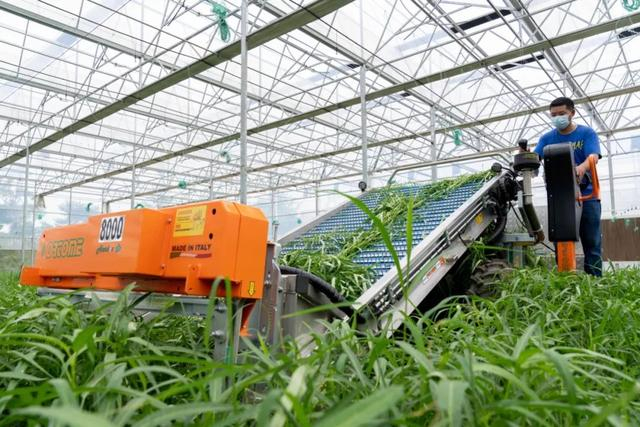 合作社负责人王魁告诉记者,这台自动蔬菜收割机是从意大利进口的,专门针对绿叶菜的收割。该机器每小时可收割1-3亩蔬菜,非常适合收获季的规模化收割,平均收割效率是人工收割的10倍左右。“蔬菜收割是整个种植过程中难度最高的环节,自动蔬菜收割机可以根据不同蔬菜调节切刀高度,既能进行土上切割,收获鸡毛菜、杭白菜等无根蔬菜,也能进行土下切割,收获菠菜等带根蔬菜,对大部分的绿叶蔬菜都能进行收割,大大节约了人力成本。”