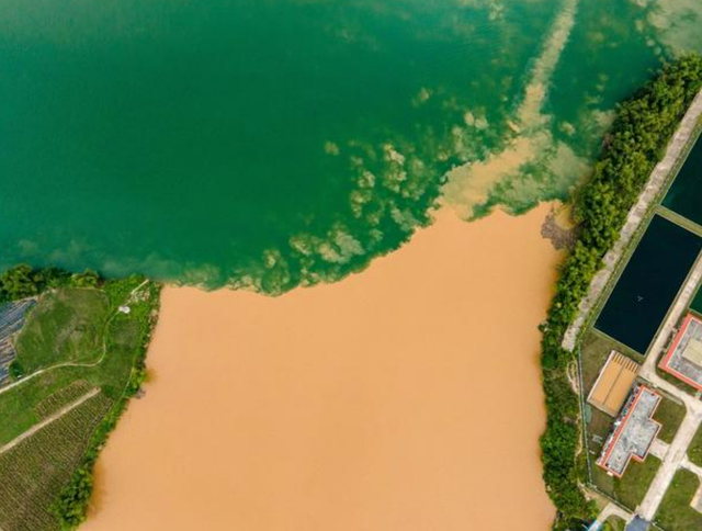 广西邕江源头现巨型“鸳鸯江”奇景,一浊一清,颜色分明