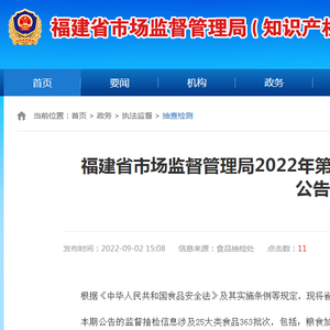 中国质量新闻网讯 近期,福建省市场监督管理局组织食品安全监督抽检,共抽检25大类食品363批次。其中抽检调味品7批次,合格7批次。