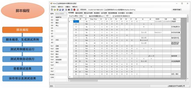 工业控制系统半仿真自动化测试工具根据自定义的测试脚本语言可高效地编写测试脚本,并自动生成测试用例下载至接口仿真设备运行,之后自动记录并判断测试结果,大大提高了测试效率,同时实现了一键回归测试。