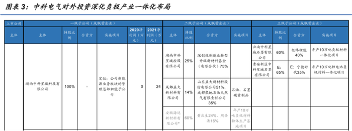 华福证券表示,中科电气对外投资聚焦主业,绑定产业链上下游。中科电气现已建成长沙星城石墨、贵州格瑞特、四川集能三大产能基地。2021年新引入深创投制造业转型升级新材料基金投资9亿增资中科星城控股有限公司(旗下控股云南(与亿纬锂能合资)、贵安新区(与宁德时代合资)两大新增基地),深创投持股75%,公司将在2年内以发行股份+支付现金方式回购上述股权。