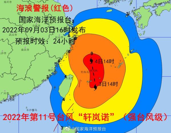 据国家海洋预报台官方微博消息,受今年第11号台风“轩岚诺”(强台风级)的影响,我国东海南部、台湾以东洋面海况恶劣,预计今明两天,浙江近岸海域将有巨浪到狂浪,上海近岸海域将有大到巨浪,同时,长江口至杭州湾沿海将出现50到120厘米的风暴增水。对此,国家海洋预报台将海浪警报升级为红色,同时发布风暴潮蓝色警报。根据《海洋灾害应急预案》规定,自然资源部今日启动台风“轩岚诺”海洋灾害ⅱ级应急响应,提醒东部沿海,特别是浙江、上海、福建沿海有关单位提前防浪避浪。